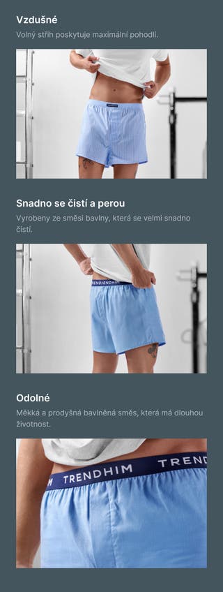 AirFeel | Balení 3 ks pruhovaných královsky modrých bavlněných boxerek volného střihu se zapouzdřeným pasem