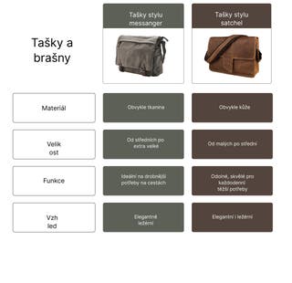 Pokud hledáte něco, co se přiklání k vyleštěnému, vintage vzhledu, brašna je tou správnou volbou. Pro modernější, uvolněnou atmosféru je lepší volbou messenger taška.