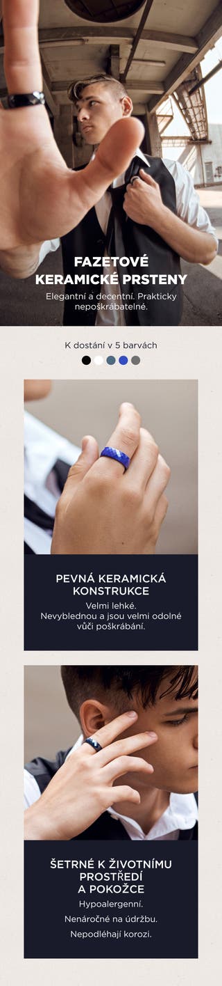 Vyroben z hypoalergenní keramiky a kompletní s fazetovým designem. Nenápadná alternativa k tradičním prstenům.
