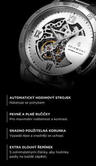 Dante II | Černé skeletové hodinky se strojkem ve stříbrné barvě