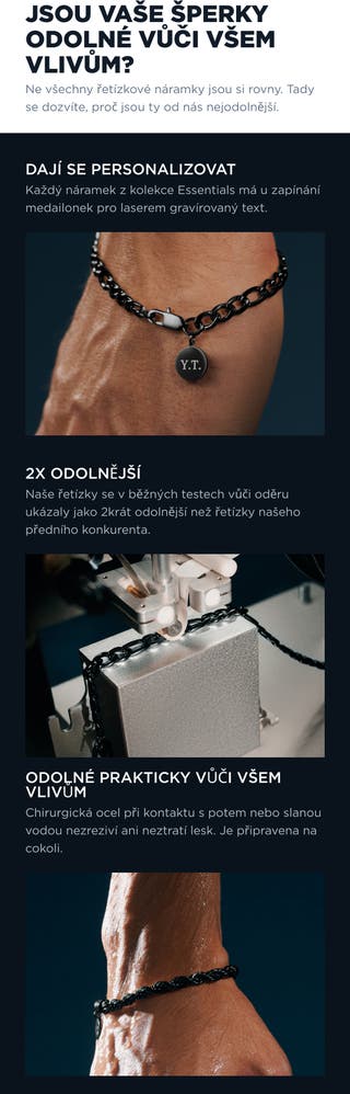 Vyberte si barvu - Essentials | 1mm kostičkovaný řetízkový náramek se zaoblenými články v černé barvě gunmetal