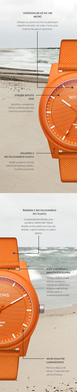 *Sociální kampaň Recapture poběží do 1. září nebo do vyprodání zásob. Aby se účastníci kvalifikovali a mohli získat hodinky Recapture z limitované edice, musí: posbírat odpadky z pláže, lesa, pole, parku nebo jiného místa v přírodě → zdokumentovat to fotografií → zaslat fotografii na info@trendhim.cz společně s jejich úplnými kontaktními údaji (celé jméno, adresa a telefonní číslo).