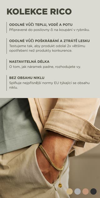 Rico dvojitý náramek ve zlaté barvěRico dvojitý náramek ve stříbrné barvě Rico dvojitý náramek v růžovo-zlaté barvěRico černý dvojitý náramek